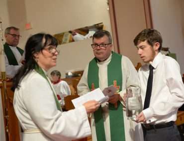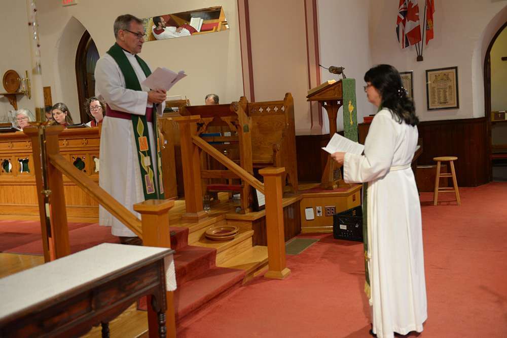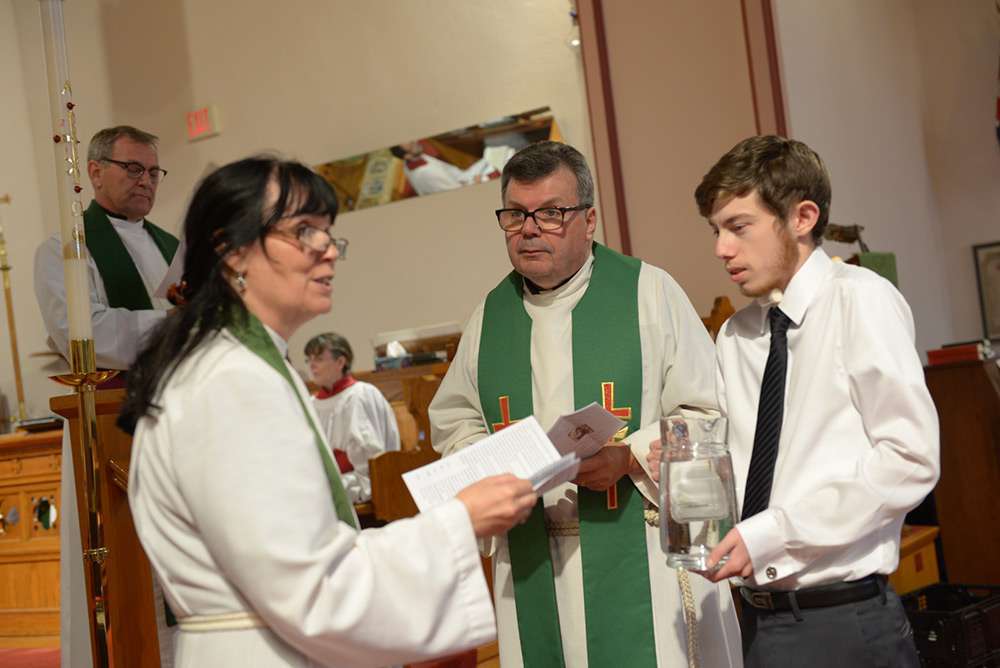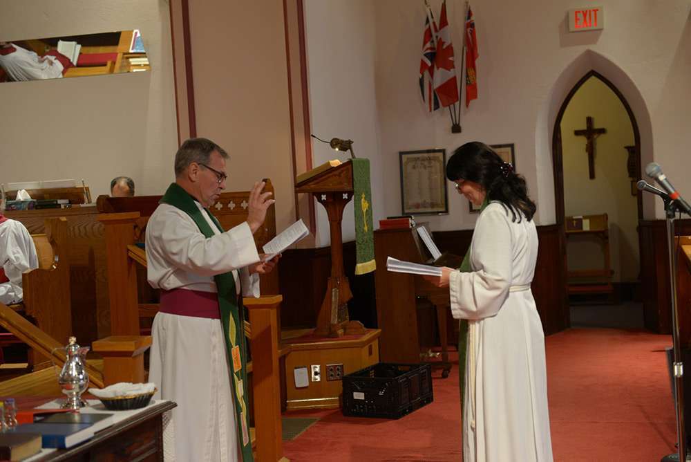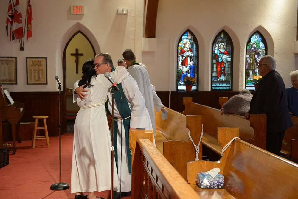 The Venerable Tanya Phibbs was the preacher at the ceremony. She currently serves as the Executive Archdeacon of Huron and is a friend and former colleague of Rev. Karine. She asked the congregation: “What would happen if each of you took time to know God intimately and well?” Recalling a scene from the Beatles movie ‘The Yellow Submarine’, she mentioned that in life there are many doors and possibilities. “It’s a good thing that there are lots of options and different choices….Rev. Karine is different: She speaks with a female voice…..She may ask ‘Why do you do that here?’ …Differences help growth to happen.